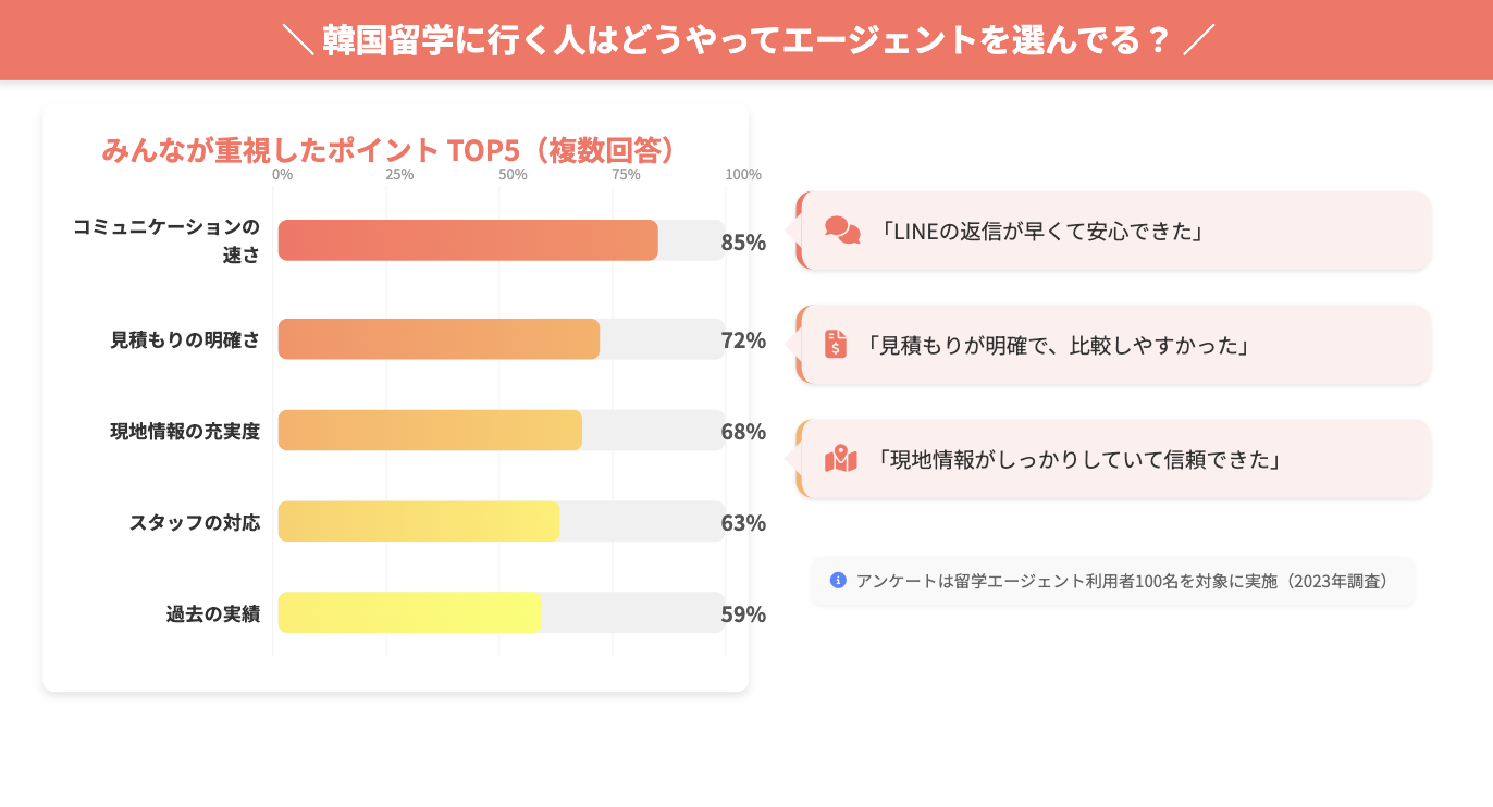 韓国留学エージェント選びで重視されたポイント(調査結果より)