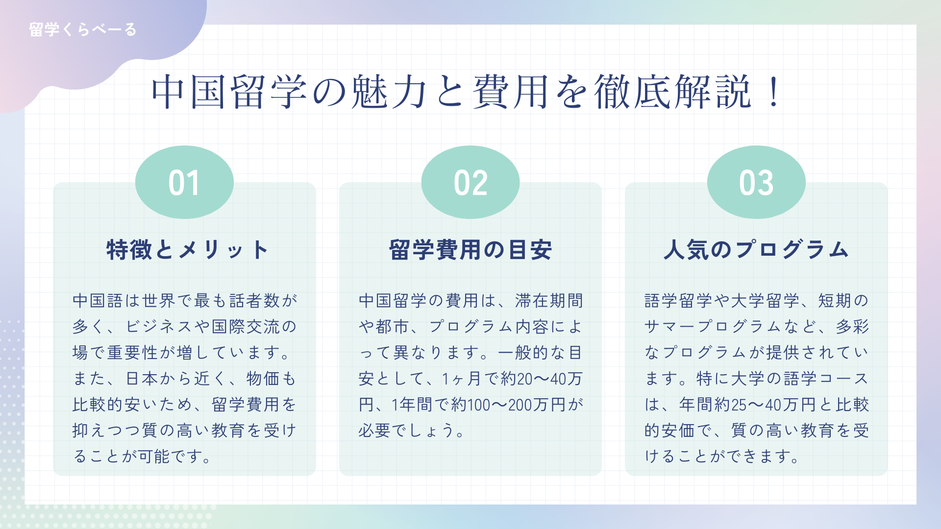 この記事では中国留学の特徴や留学費用などをご紹介しているので、ぜひご覧ください。