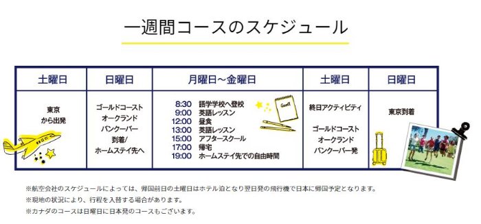 | 費用に含むもの | 航空券/授業料/宿泊 |