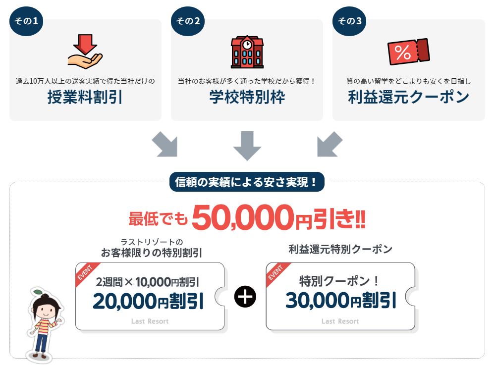 ラストリゾートだけの『学校特割』ー 語学学校へ直接申込みより安い!それは何故?