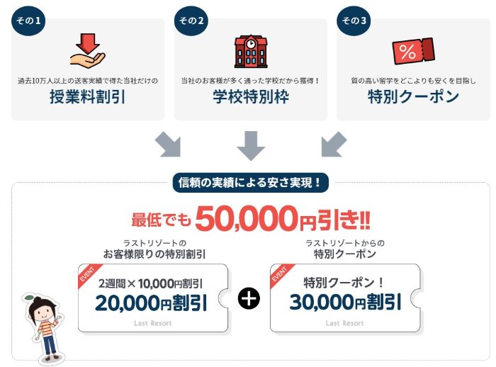 ラストリゾートだけの『学校特割』ー 語学学校へ直接申込みより安い!それは何故?